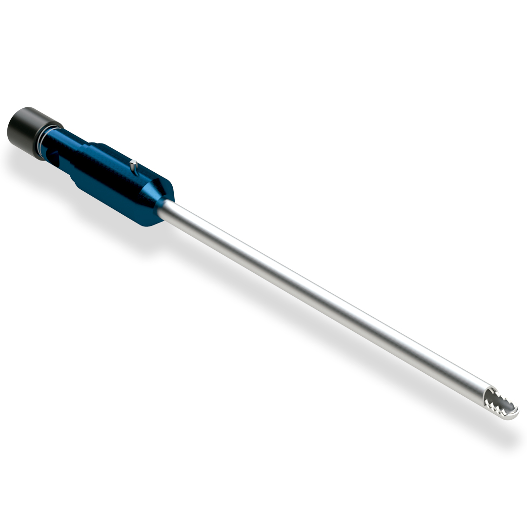 O produto é composto por uma cânula guia externa e uma cânula interna de corte e sucção, proporcionando precisão e eficiência durante a cirurgia.